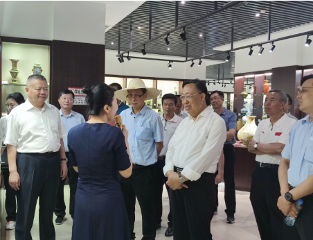 耿惠昌一行实地参观了皇窑景区,听取了皇窑陶瓷文化旅游发展有限公司董事长黄青对皇窑陶瓷有关情况的介绍以及集团深化对港澳台侨交流工作,产教融合、文化传承等方面开展的工作的汇报。调研组成员们在考察过程中边听边看,感受到了景德镇千年陶瓷文化的底蕴和魅力,对皇窑的产品及所取得的成绩给予了充分的肯定。