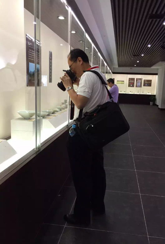 故宫博物院古器物部主任吕成龙在参观皇窑陶瓷艺术博物馆